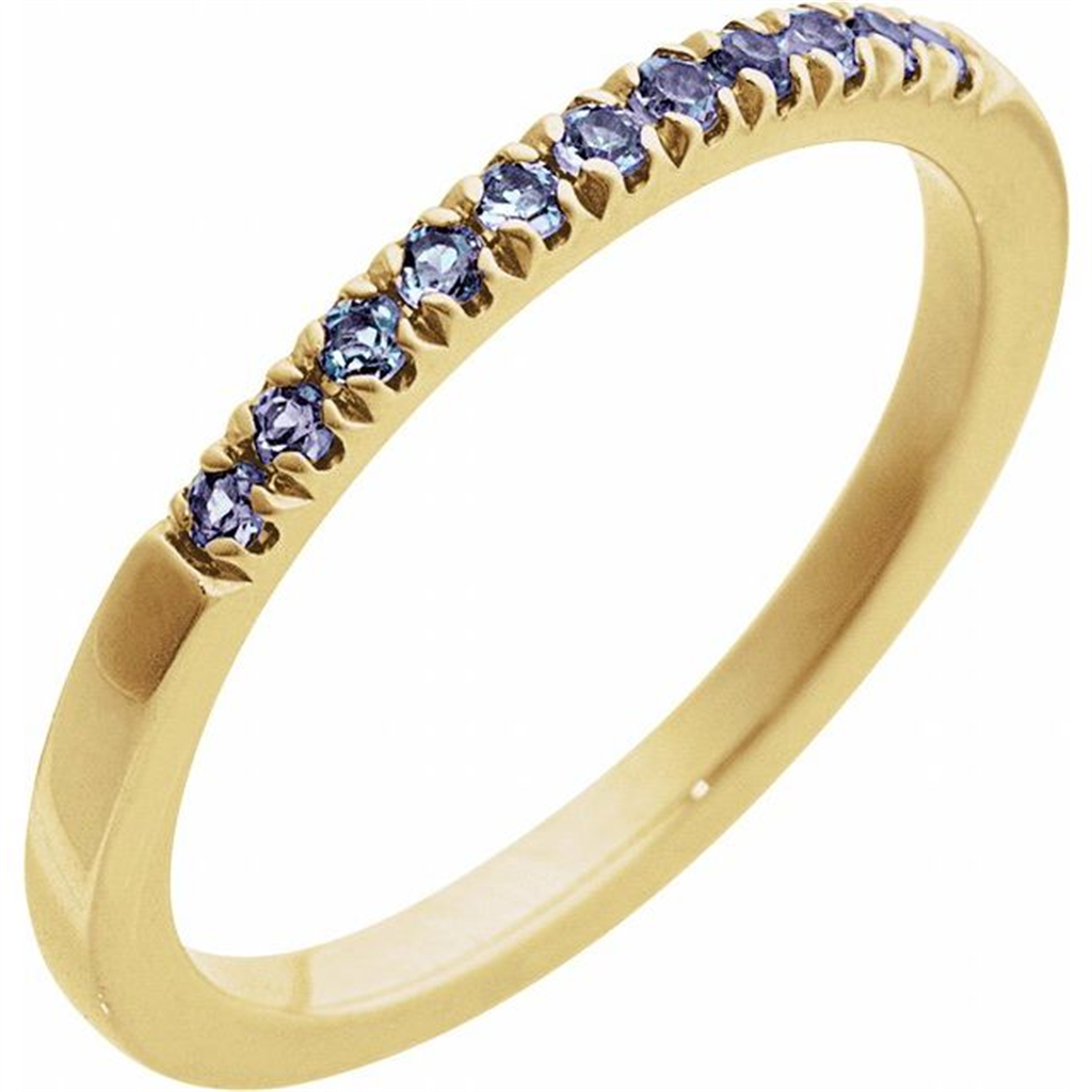 14K Yellow Gold June Birthstone Round Alexandrites Band Ring