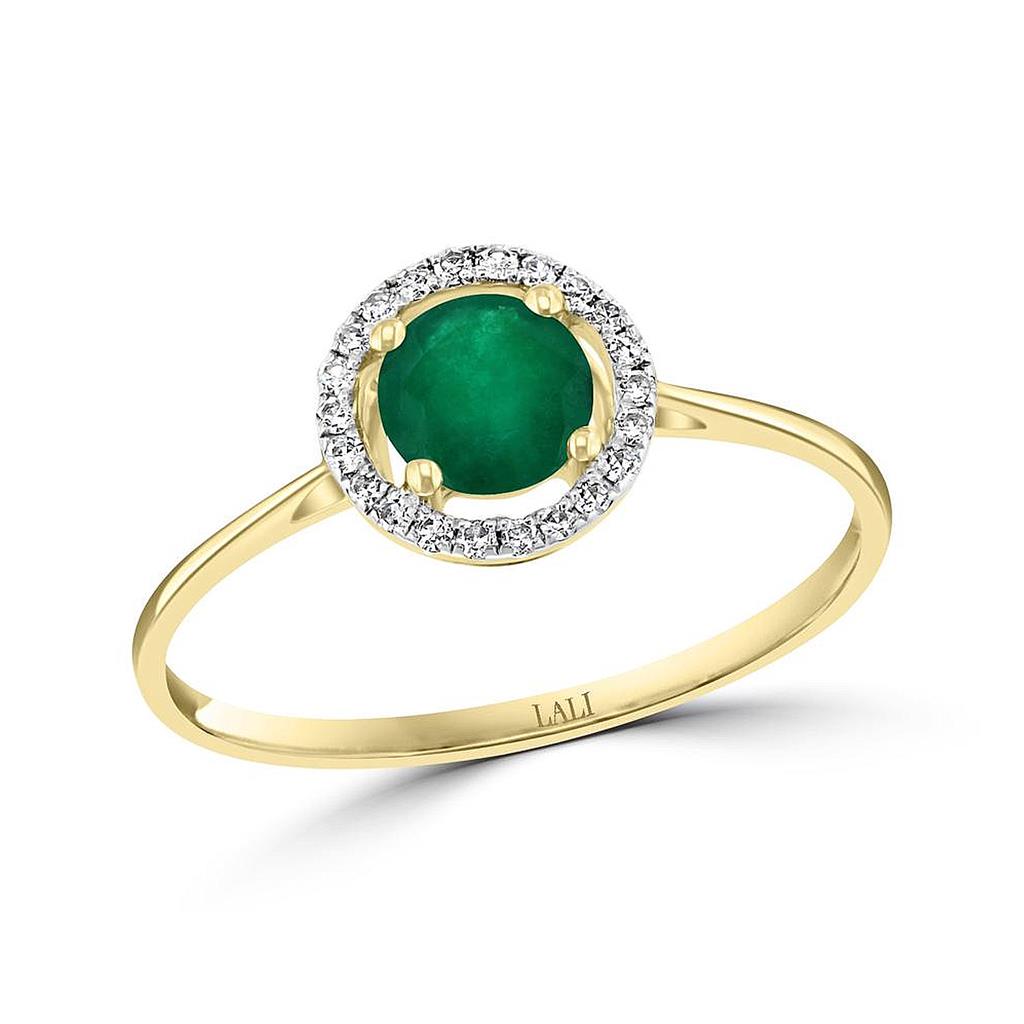 14K Yellow Gold Round Emerald Halo Ring