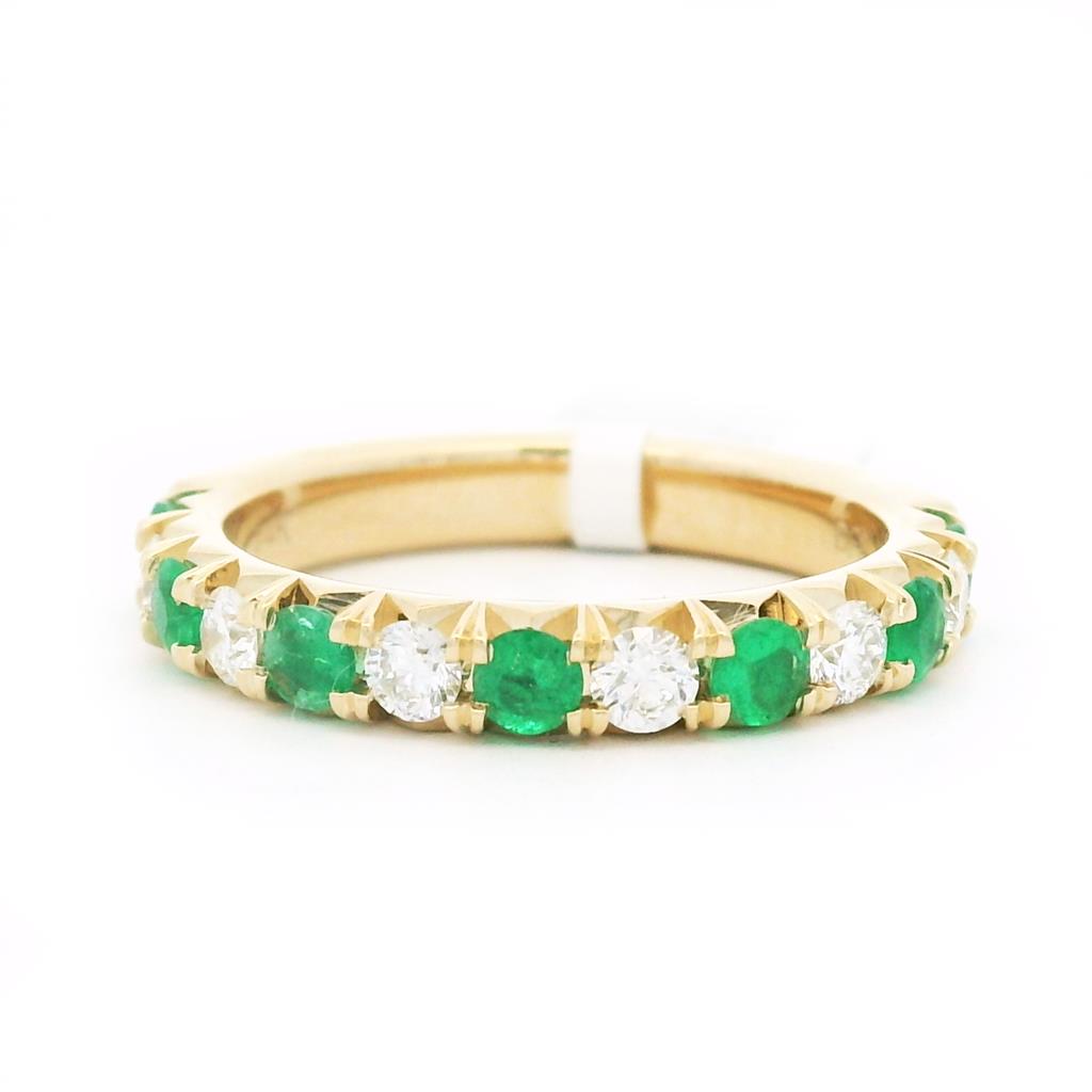 14K Yellow Gold Round Emeralds Band Ring