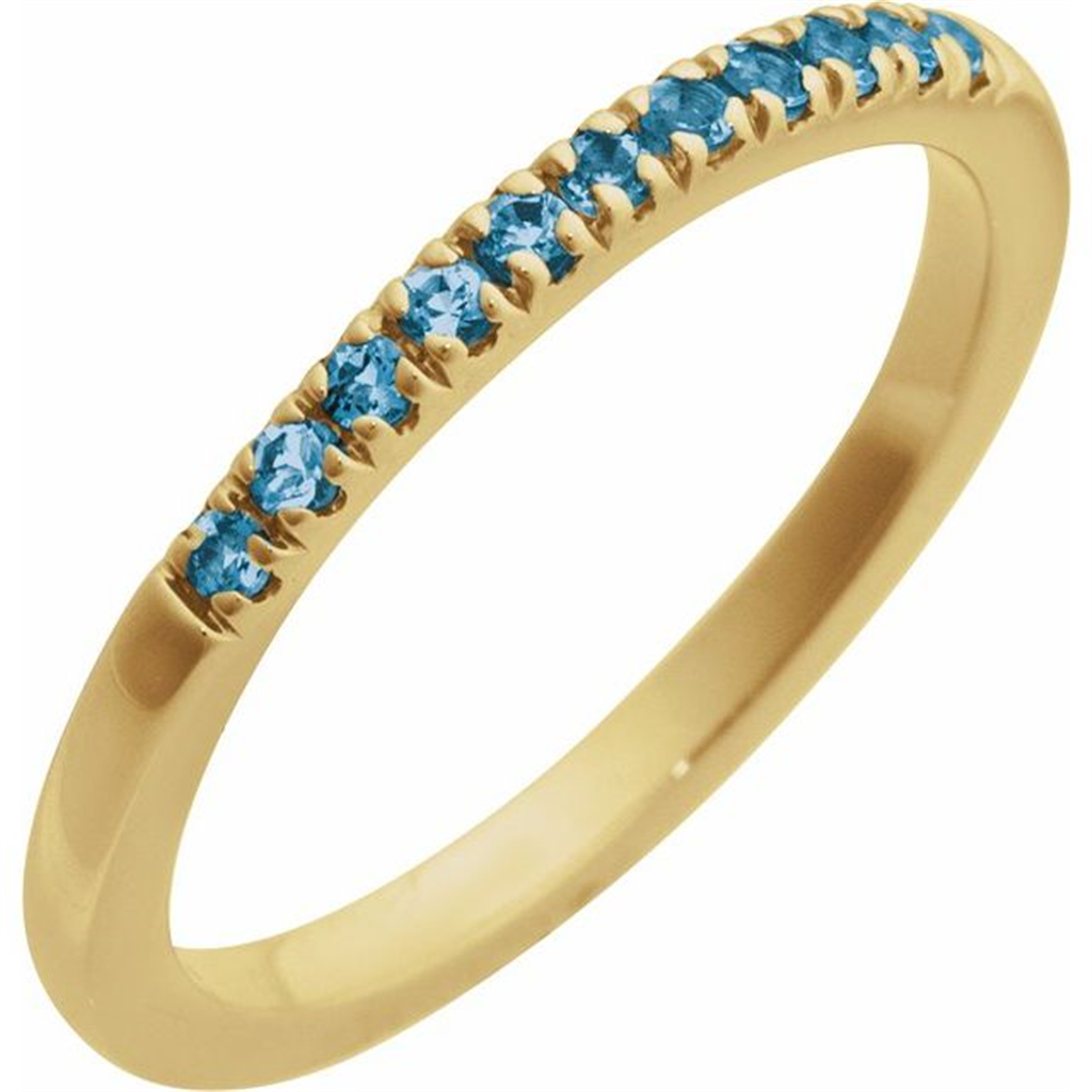 14K Yellow Gold December Birthstone Round London Blue Topaz Band Ring