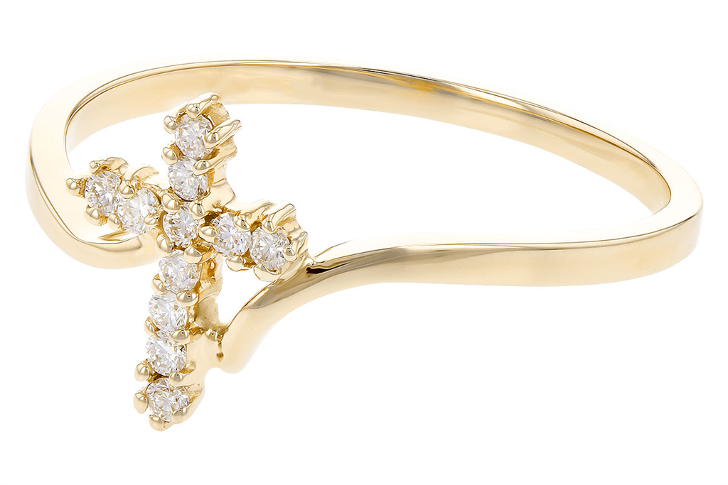 14K Yellow Gold Stackable Cross Natural Diamonds Ring