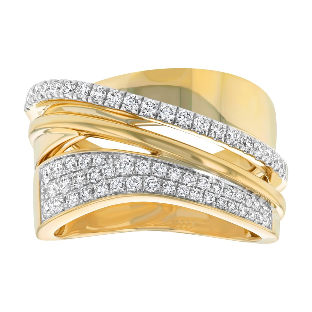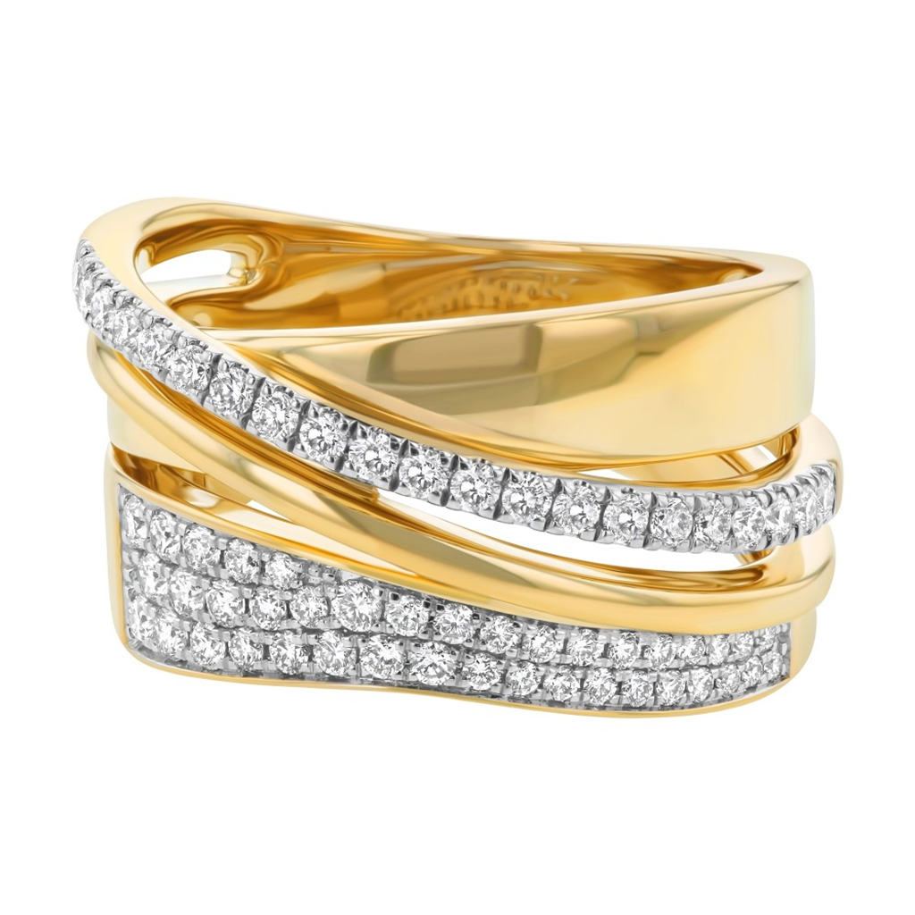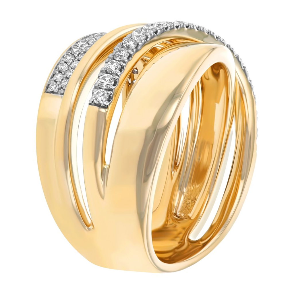 14K Yellow Gold Twisted Natural Diamonds Ring