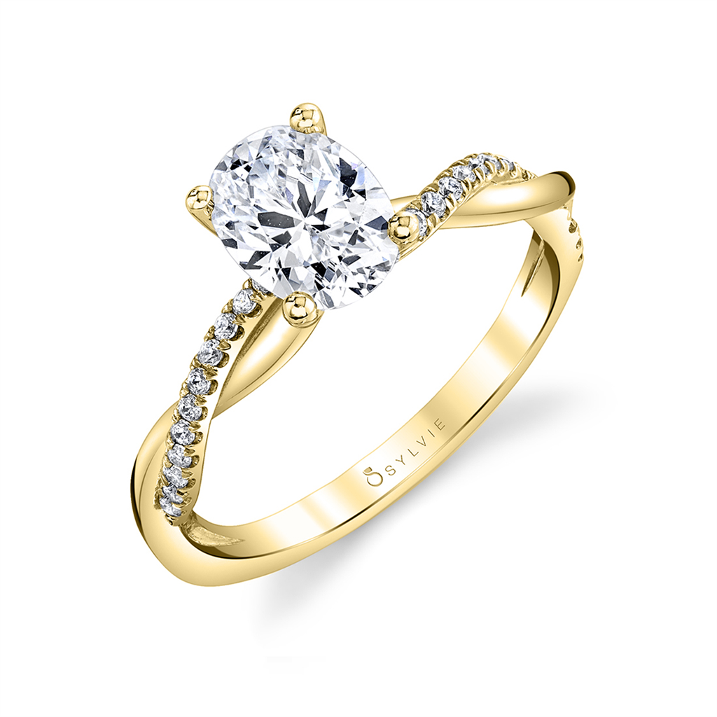 14K Yellow Gold 'Yasmine' Twist Oval Natural Diamonds Engagement Ring