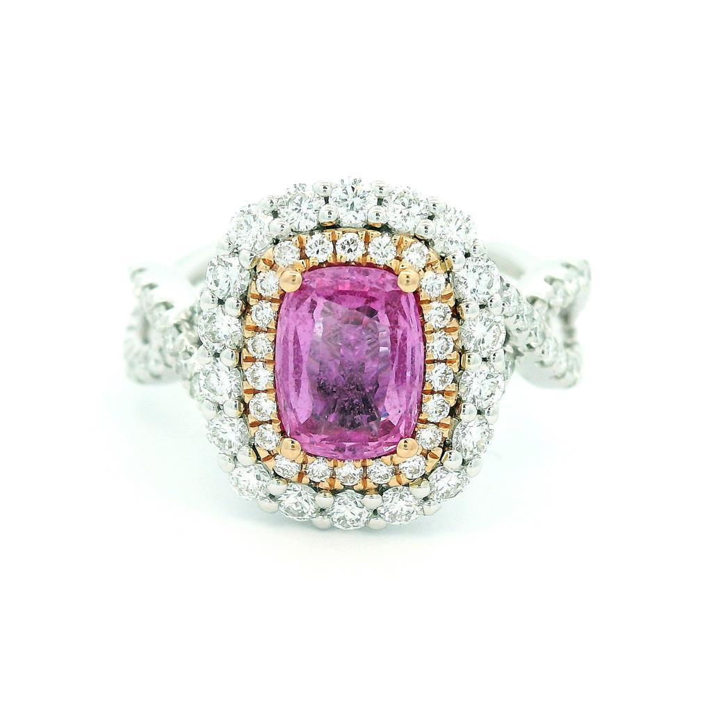 • Stones: (1) Cushion Pink Sapphire (70) Round Diamonds