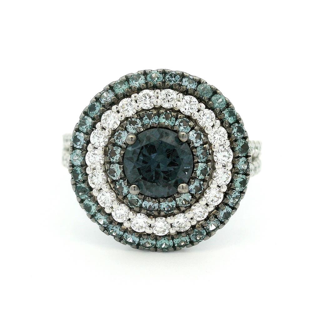 18K White Gold Black Rhodium Finish Round Color Change Garnets Halo Ring