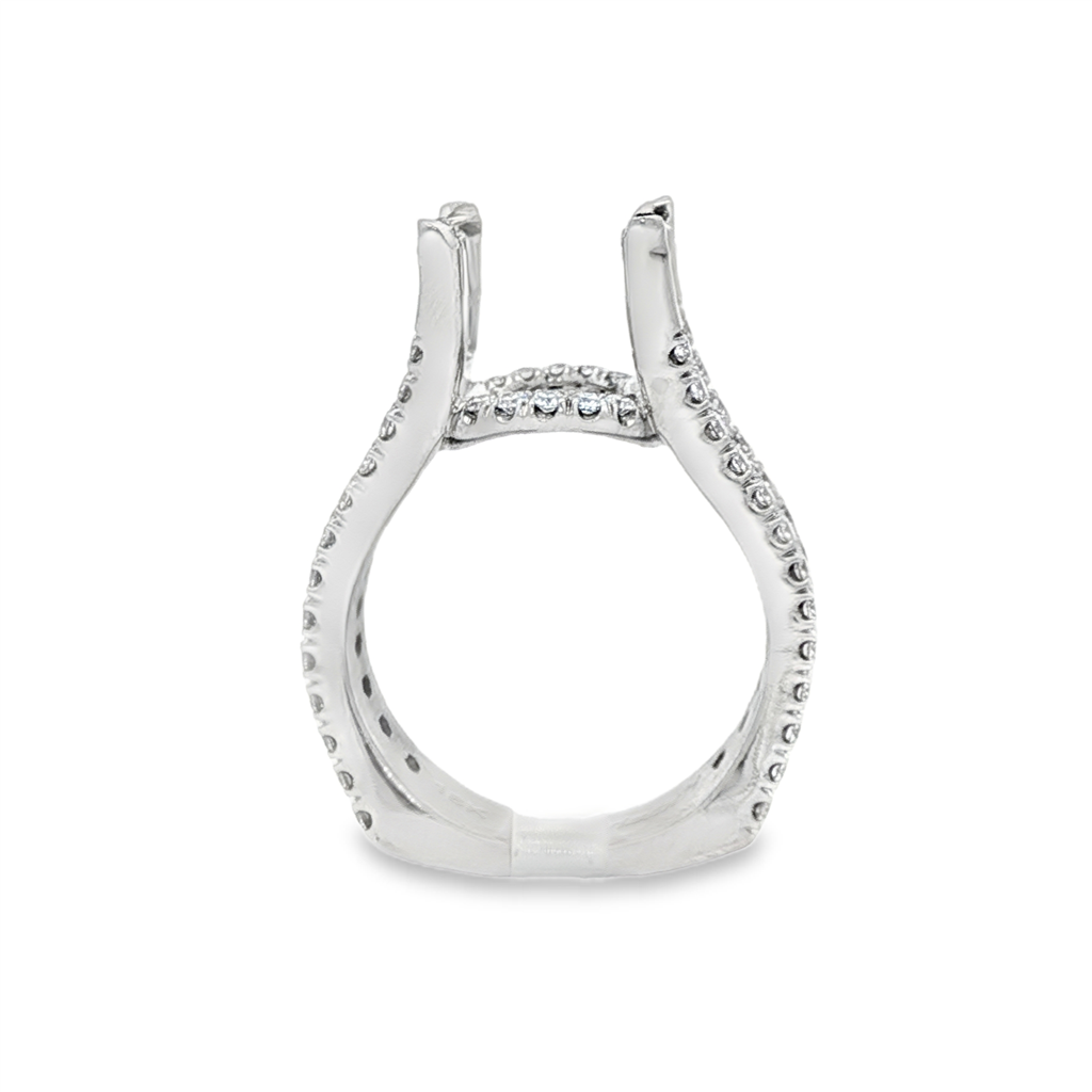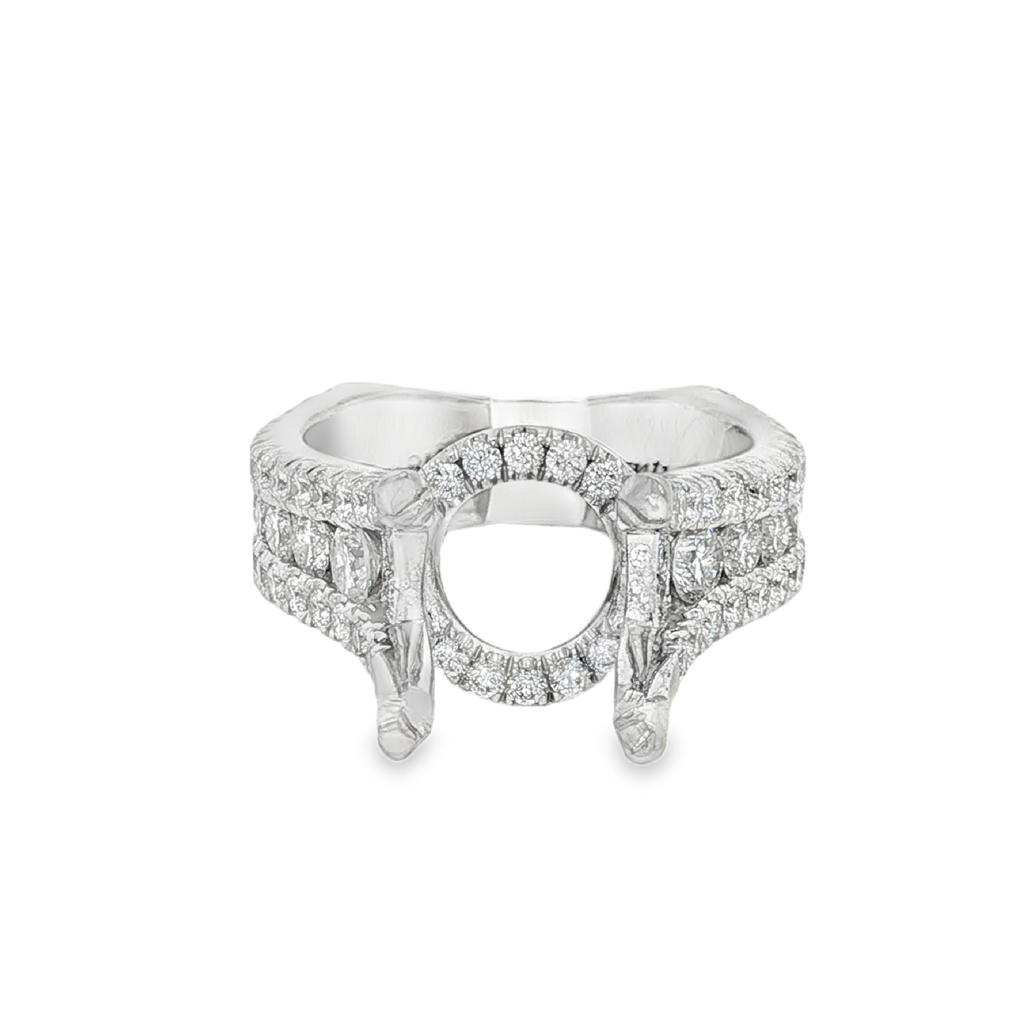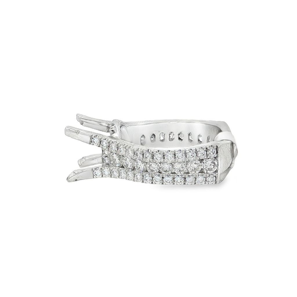 18K White Gold Wide Band Round Diamond Engagement Ring