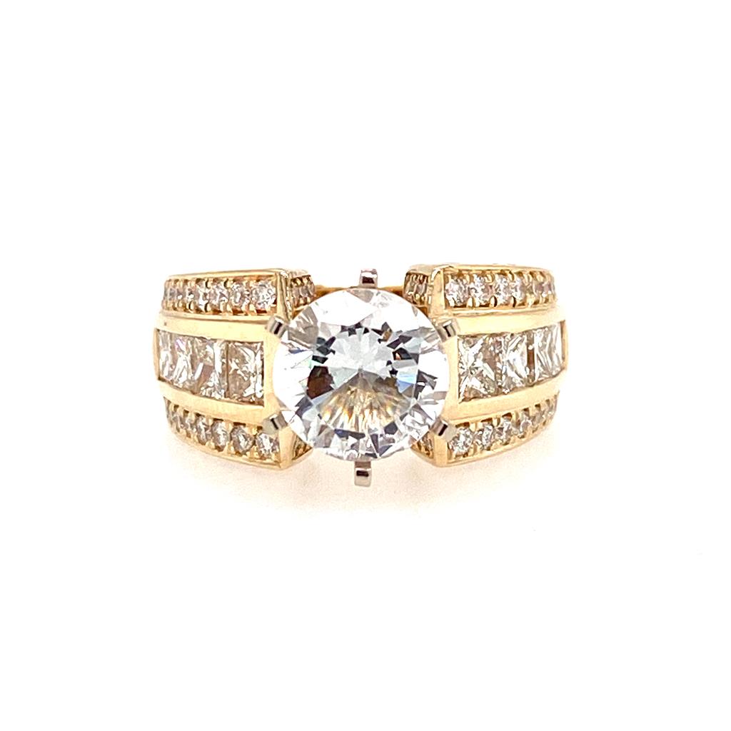 18K Yellow And White Gold Contemporary Round Natural Diamonds Engagement Ring