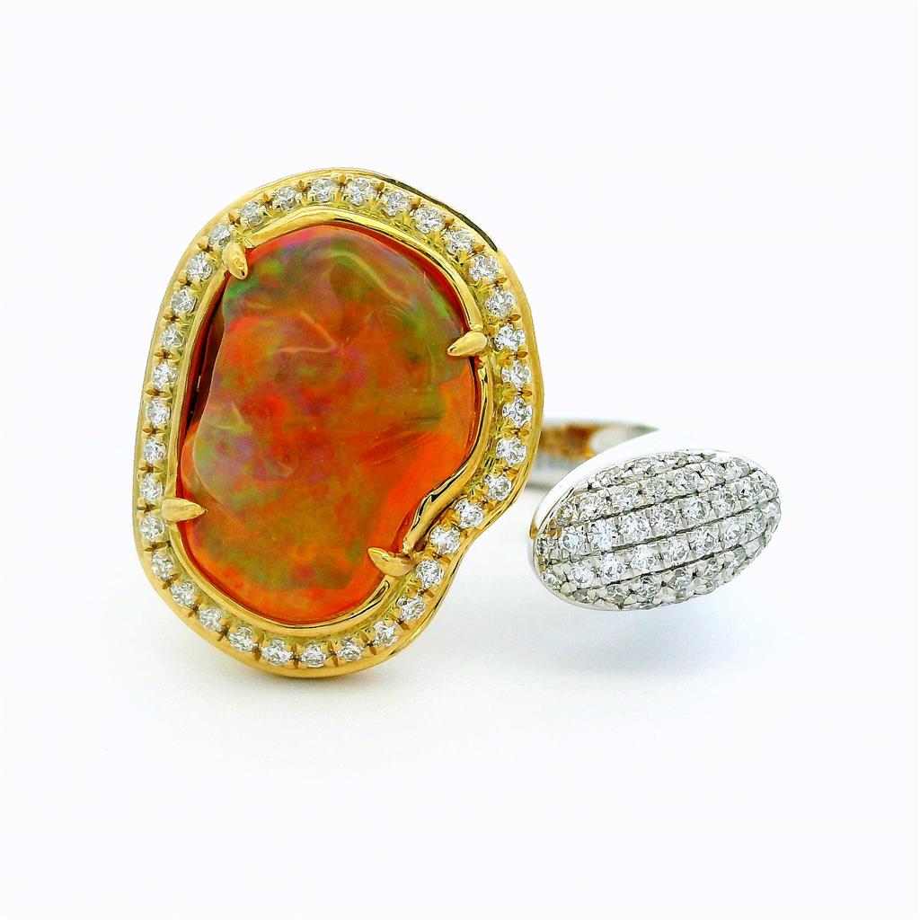 • Stones: (1) Free Form Fire Opal (70) Round Diamonds