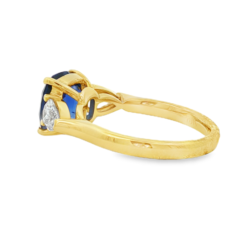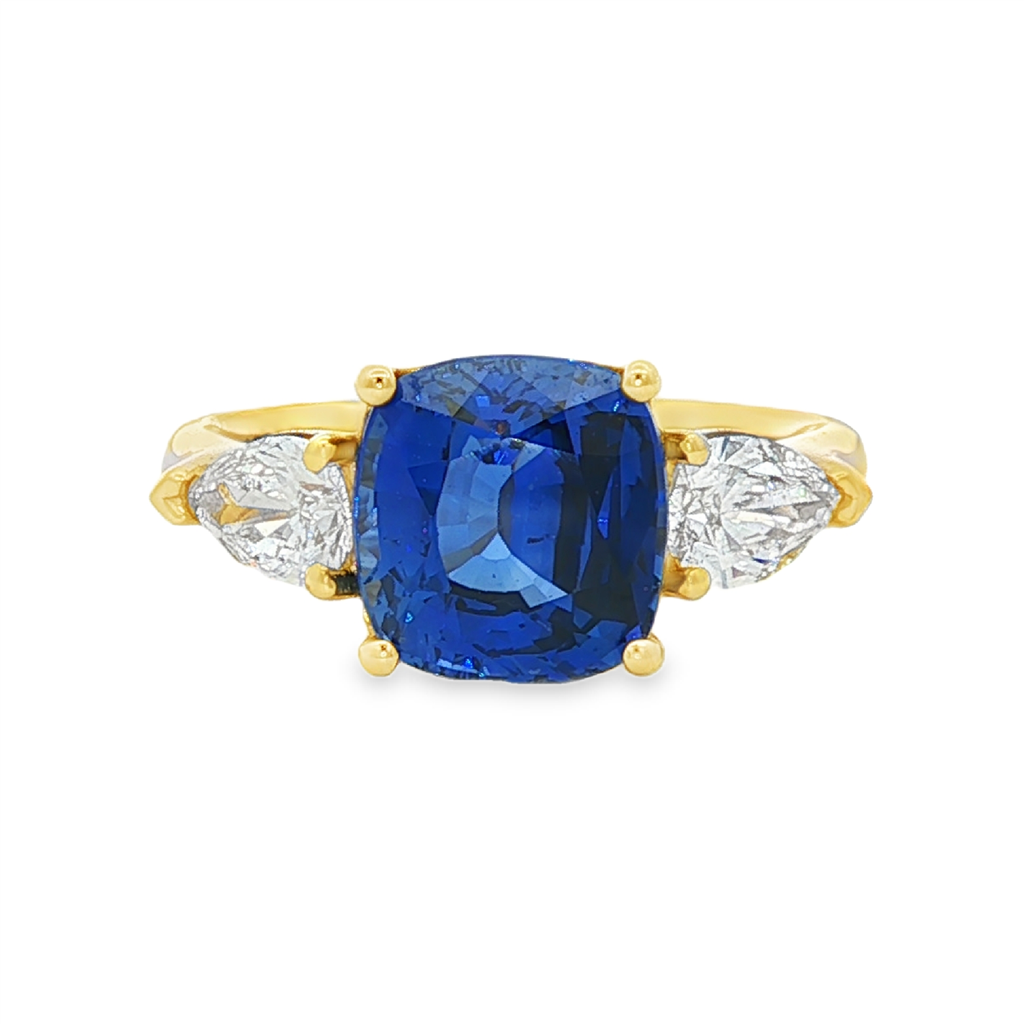 • Stones: (1) Cushion Sapphire (1) Pear Diamond (1) Pear Diamond