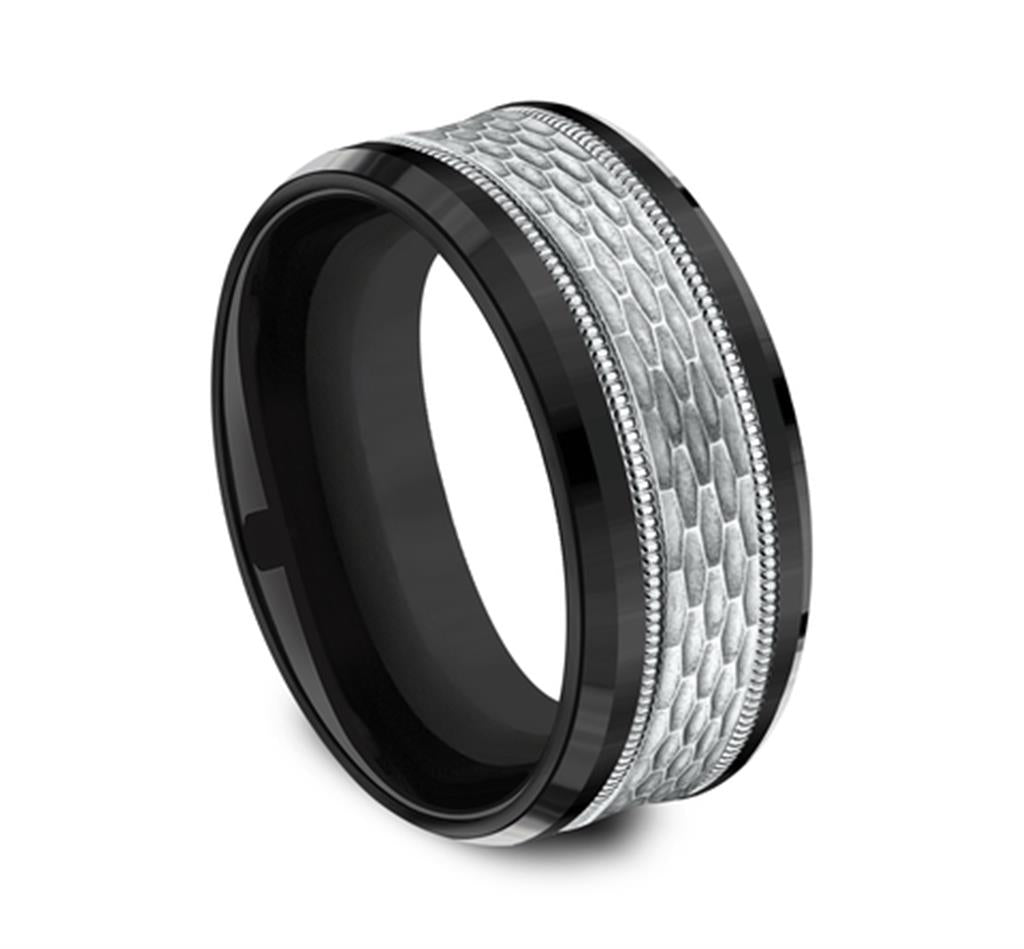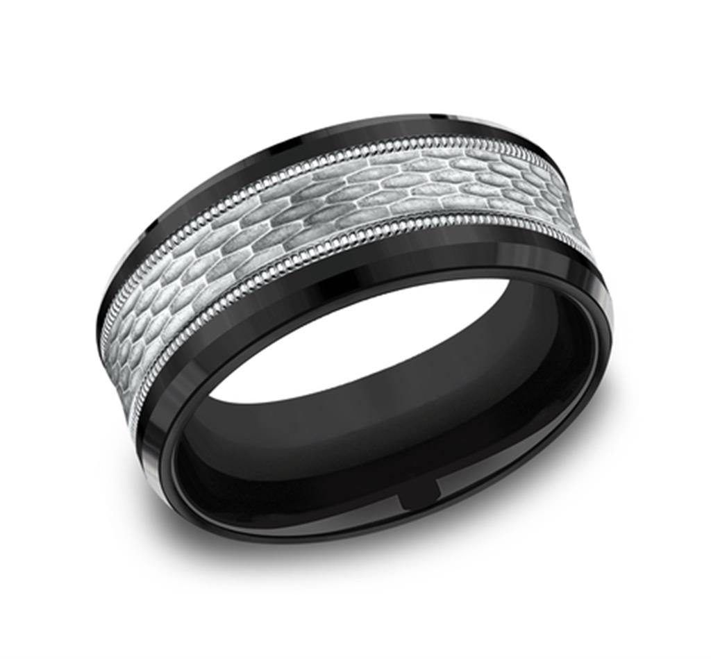 Black Titanium And 14K White Gold ‘The Athlete’ Mesh Pattern 9mm Wedding Band