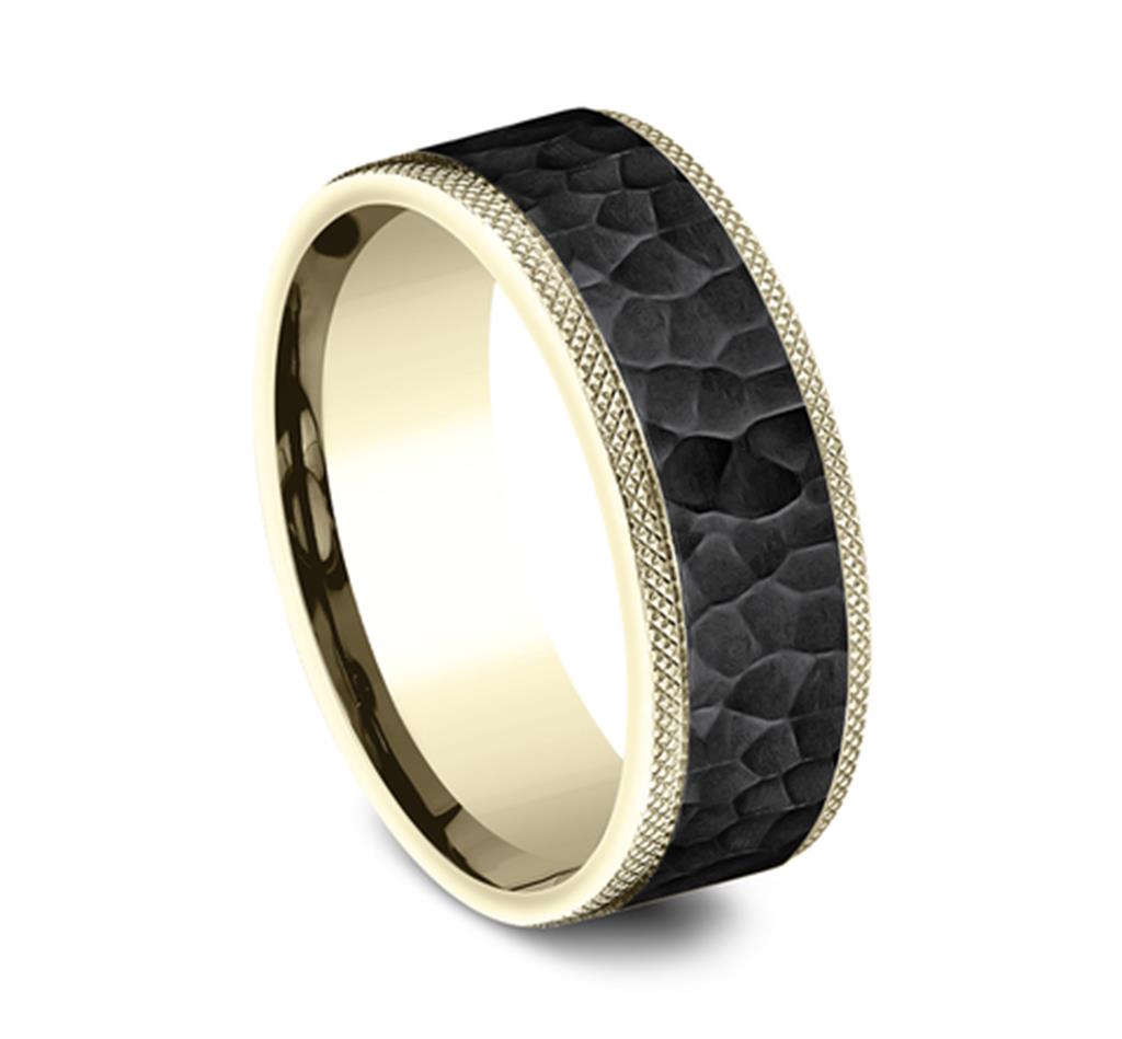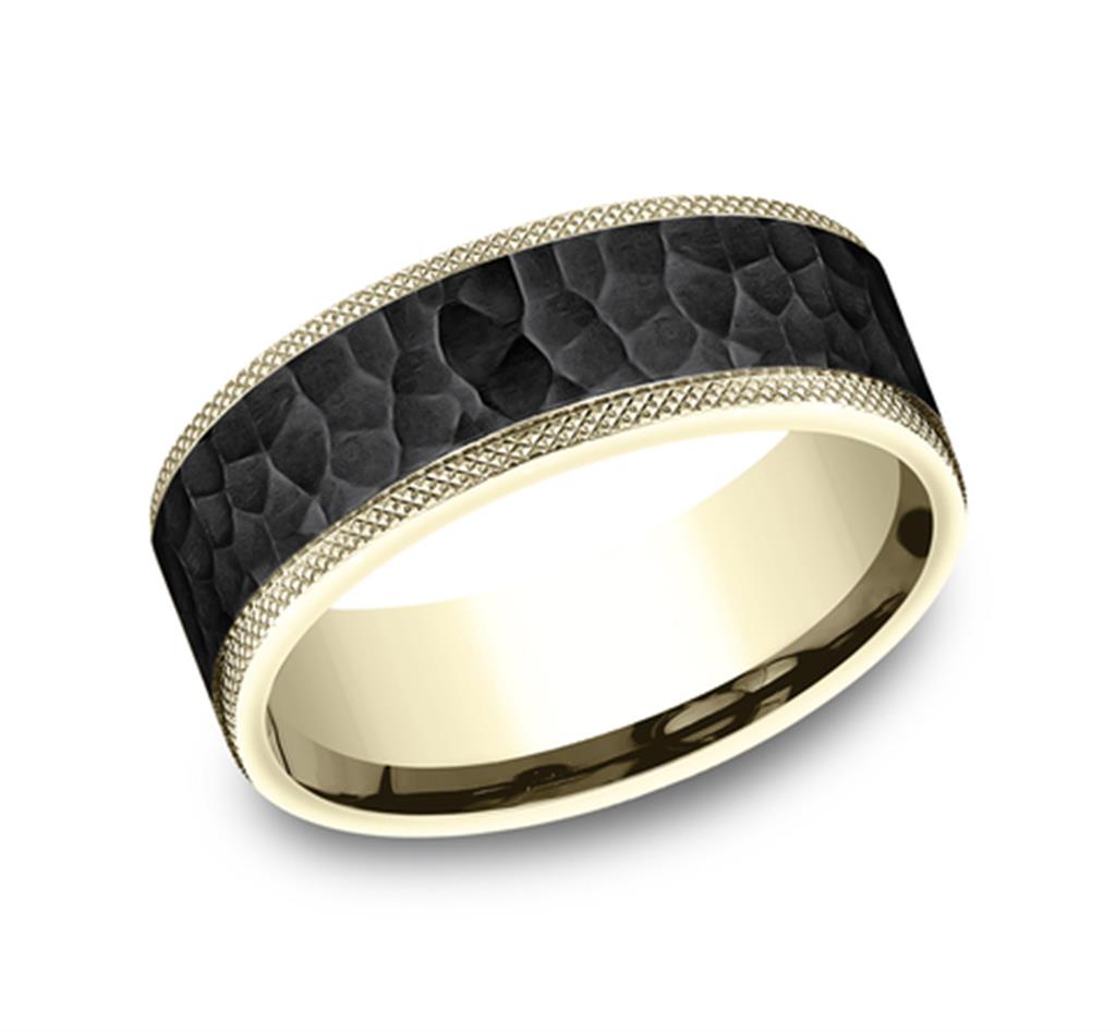 Black Titanium And 14K Yellow Gold ‘The Griffin’ Hammered Finish 8mm Wedding Band