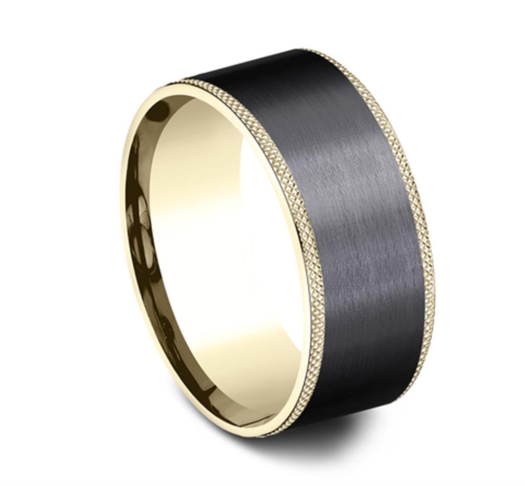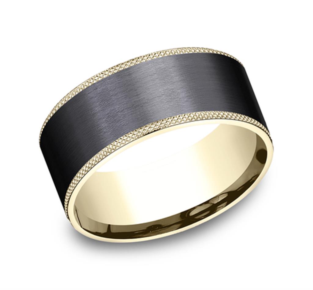 Black Titanium And 14K Yellow Gold ‘The Rogue’ Satin Finish Knurl Edges 9mm Wedding Band