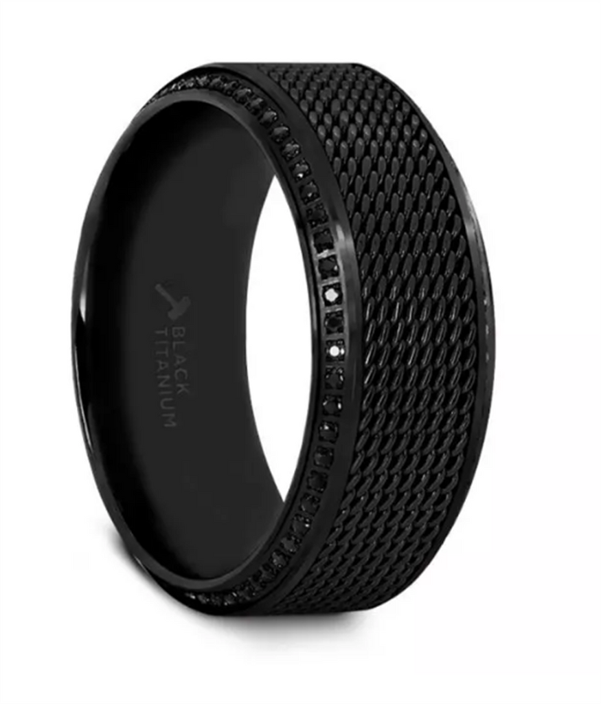 Black Titanium ‘Knight’ 10mm Steel Chain Black Diamond Wedding Band
