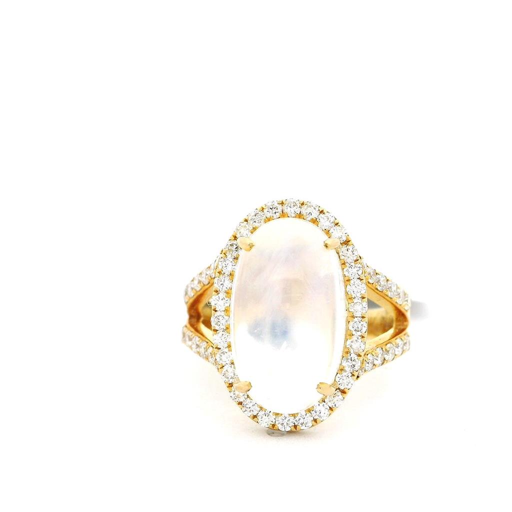 18K Yellow Gold Cabochon Moonstone And Diamond Ring