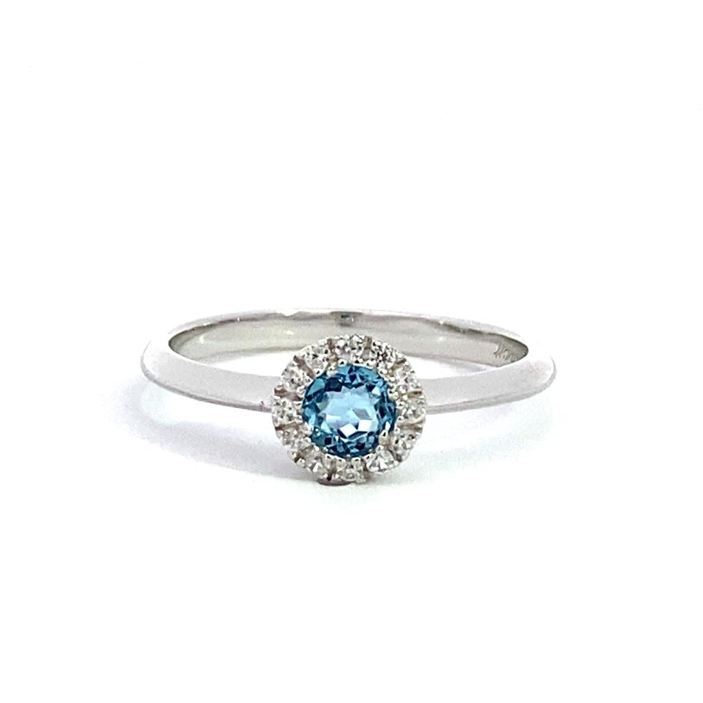 December Birthstone Ring: Sterling Silver Swiss Blue Topaz Halo Ring
