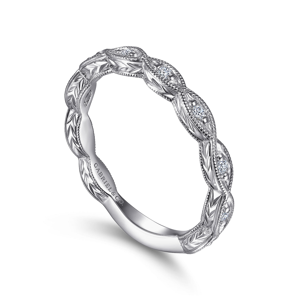 14K White Gold Vintage Inspired Prong Set Straight Diamond Ring