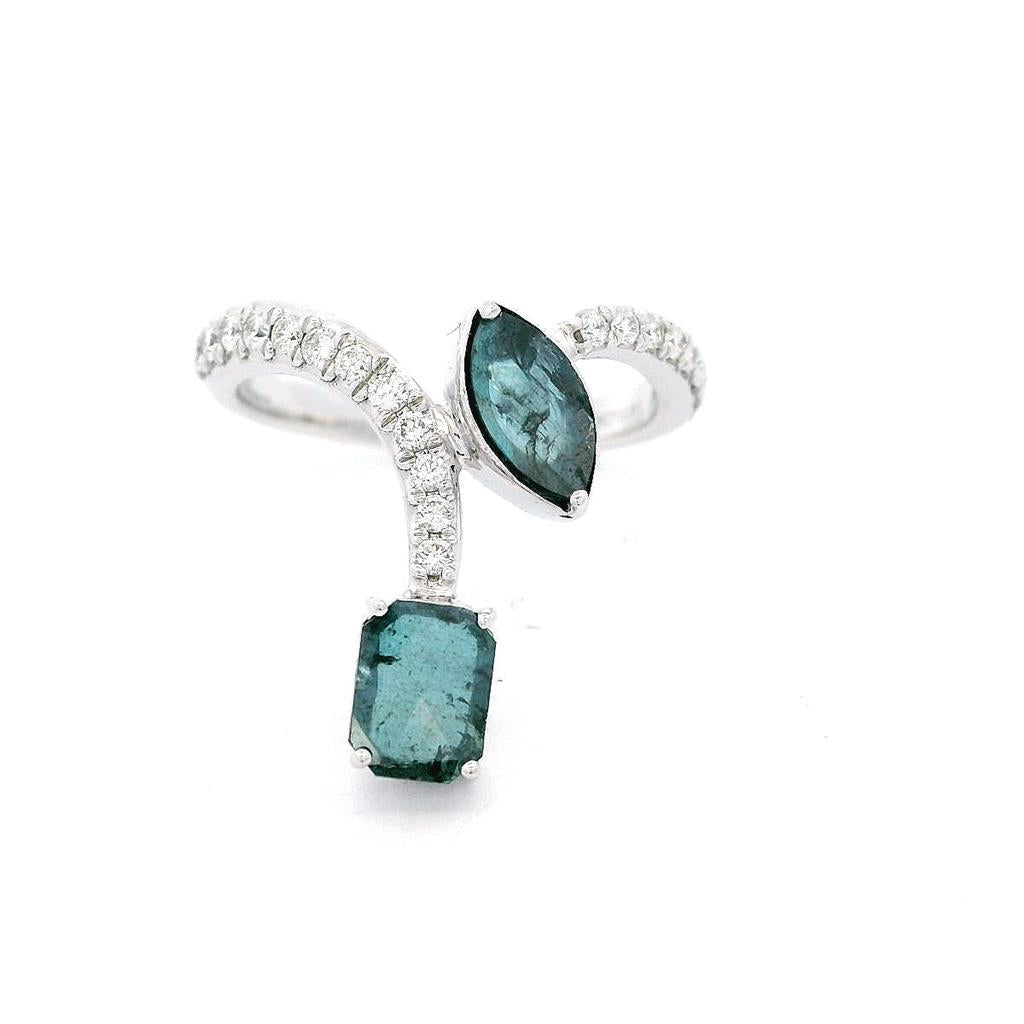 • Stones: (1) Natural Irradiated Blue Pear Diamond (1) Natural Irradiated Blue Emerald Cut Diamond (20) Round Diamonds