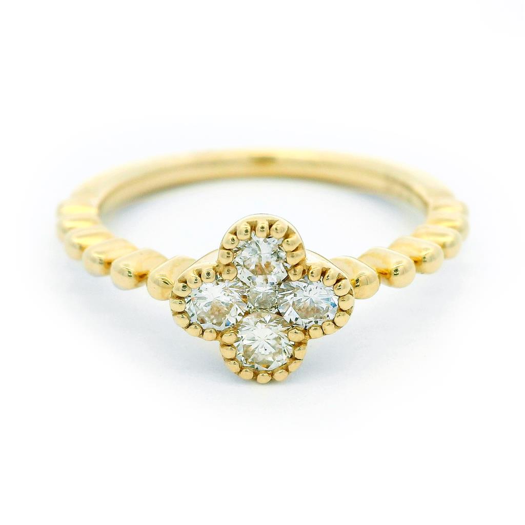 14K Yellow Gold Flower Natural Diamonds Ring