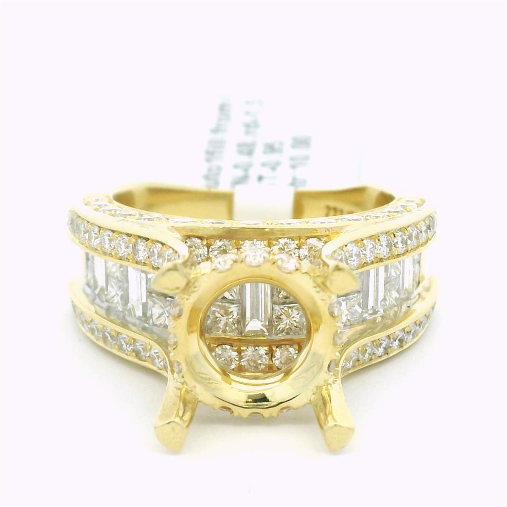18K Yellow Gold Hidden Halo Engagement Ring With 16=0.48Ctw Princess Diamonds And 7=0.95Ctw Baguette Diamonds, Size 7: *Center Diamond Not Included