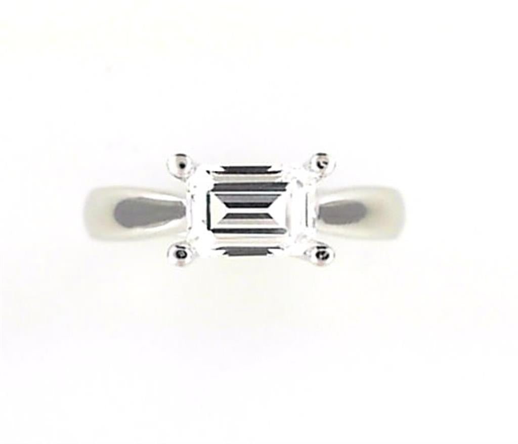 14K White Gold East West Emerald Cut Center Solitaire Ring