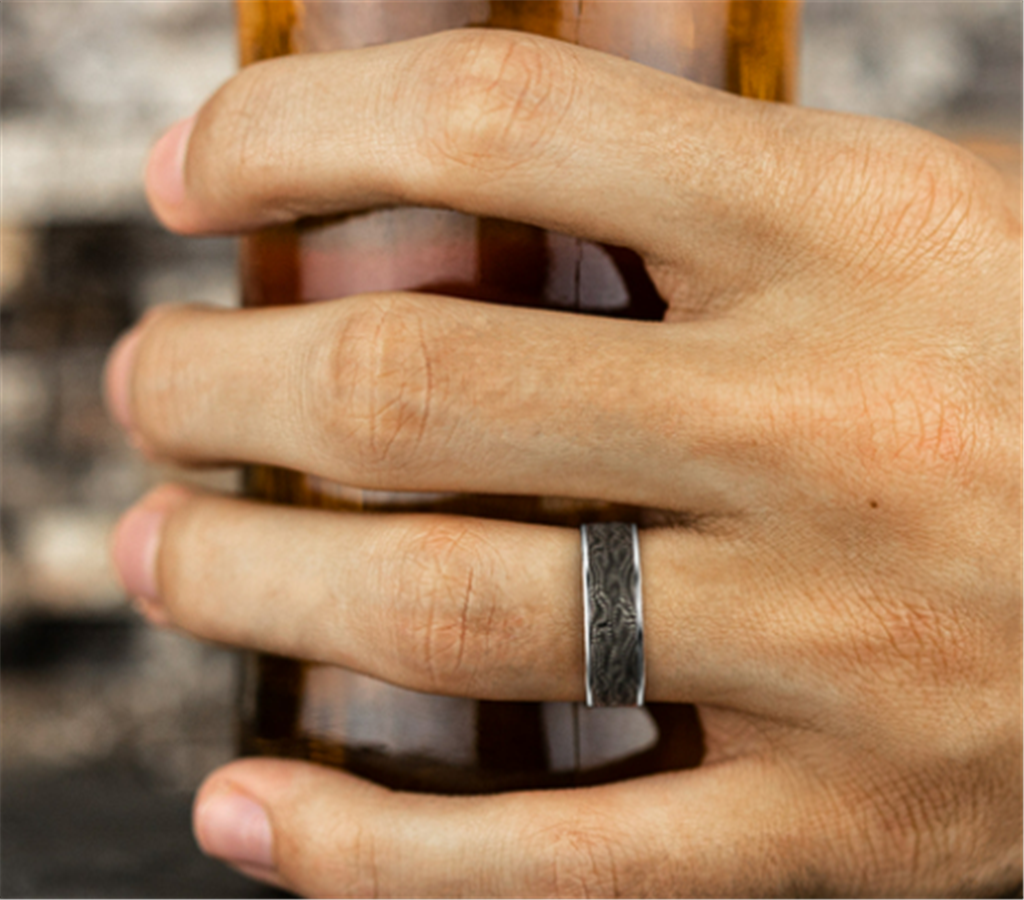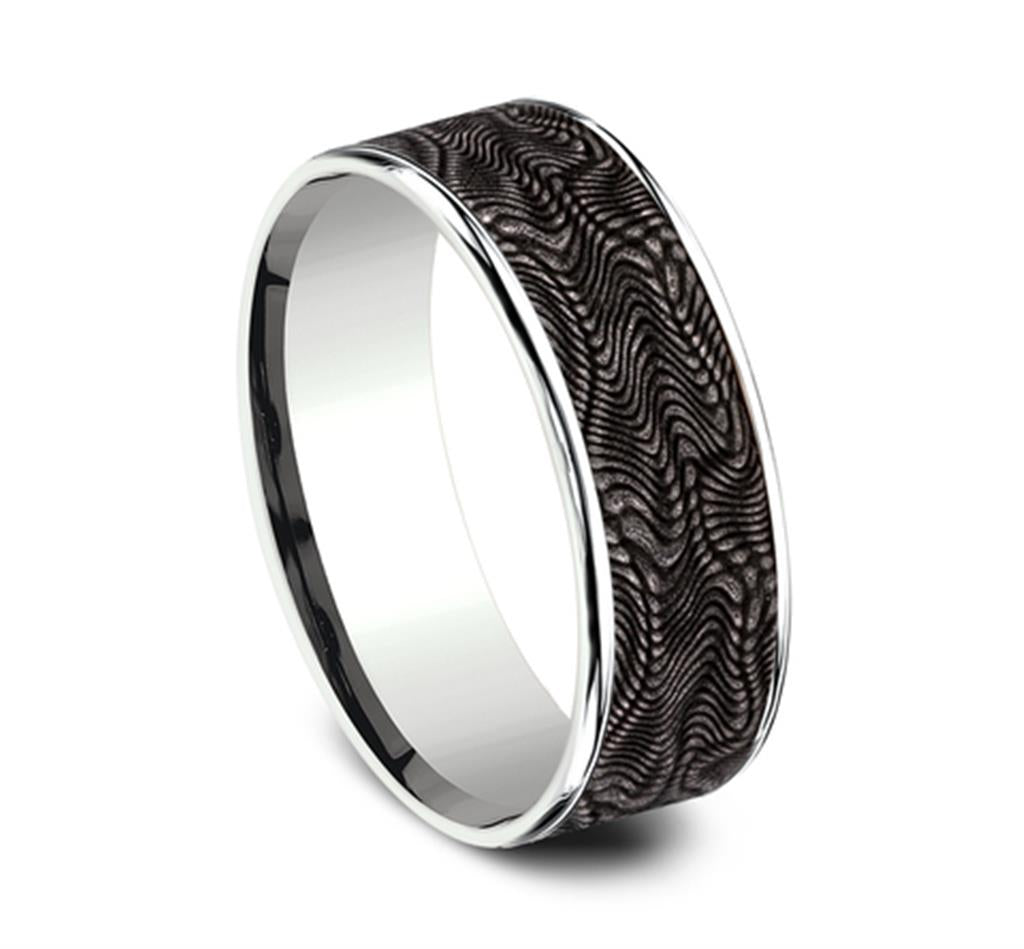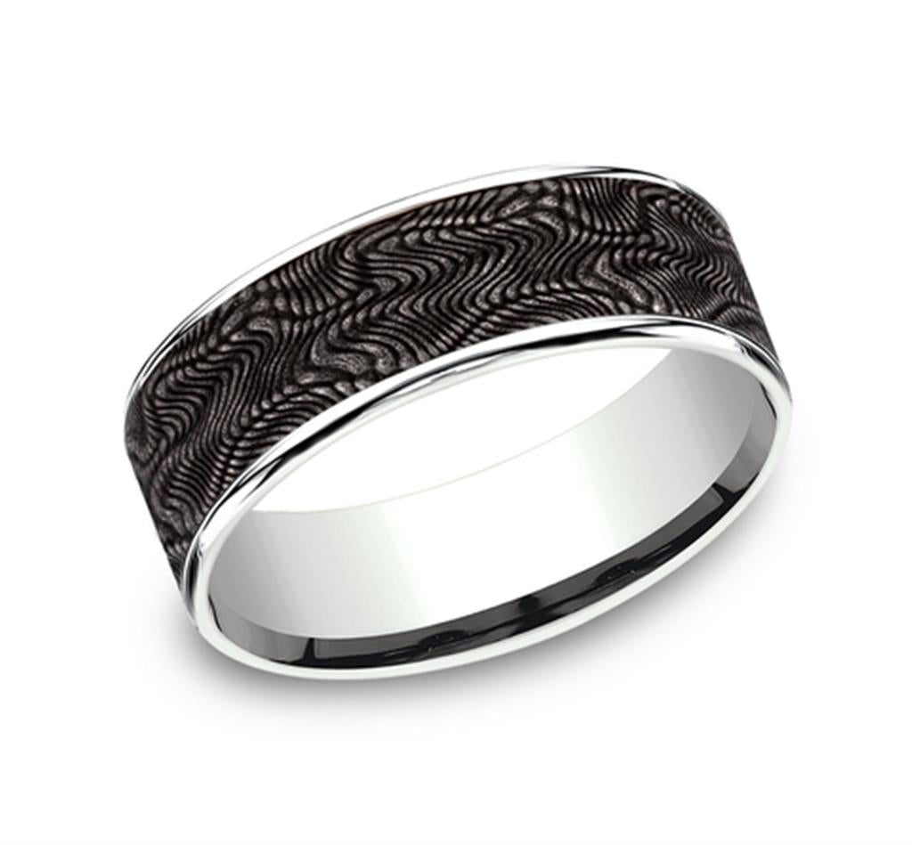 Gray Tantalum And 14K White Gold ‘The Python’ Snakeskin Patterned 7.5mm Wedding Band
