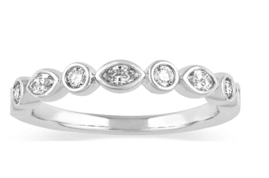 Lab Grown Diamond 14K White Gold Half Anniversary Ring With 9=0.37Ctw Marquise And Round Lab Grown Diamonds Size 7