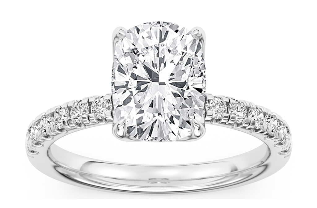 Lab Grown Diamond 14K White Gold Classic Diamond Ring With (1) Cushion Lab Grown Diamond 3.00CT F VS1 IGI And 14 =0.29CTW Round Lab Grown Diamonds Ring Size 7