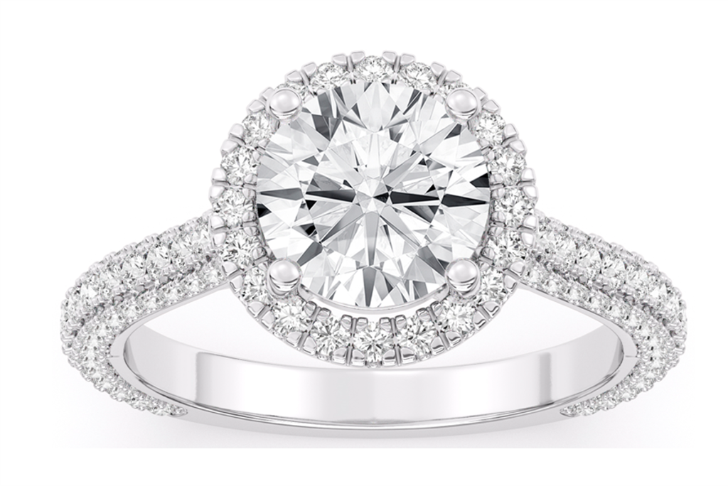 Lab Grown Diamond 14K White Gold Halo Diamond Ring With (1) Round Lab Grown Diamond 1.52CT And 136 =0.77CTW Round Lab Grown Diamonds Ring Size 7