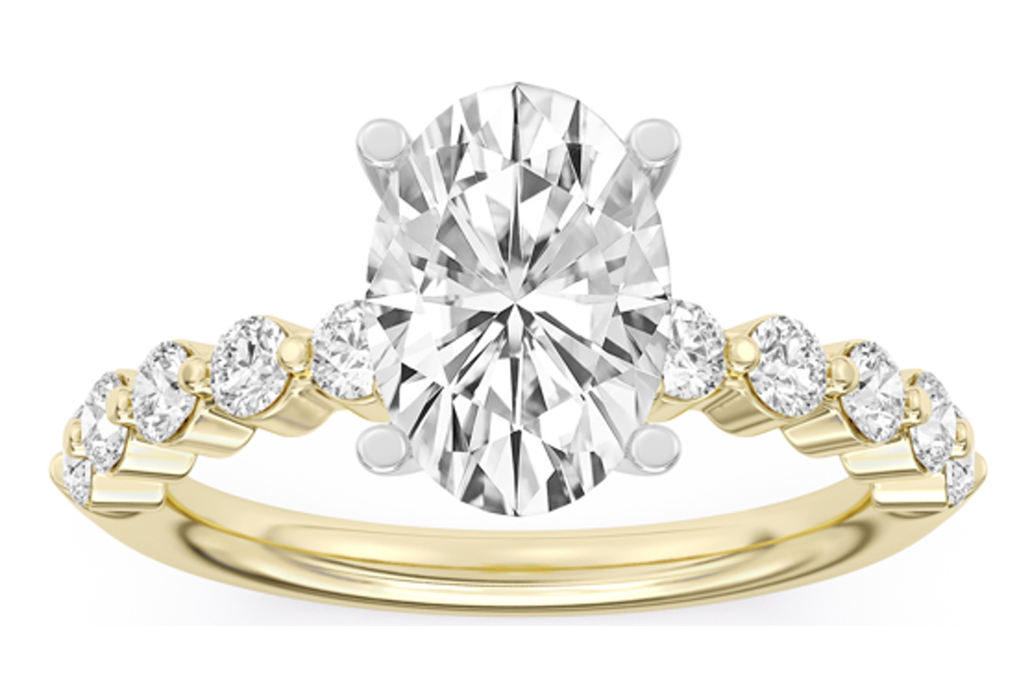 Lab Grown Diamond 14K Yellow And White Gold Classic Diamond Ring With (1) Oval Lab Grown Diamond 3.07CT F VS1 IGI And 10 =0.66CTW Round Lab Grown Diamonds Ring Size 7