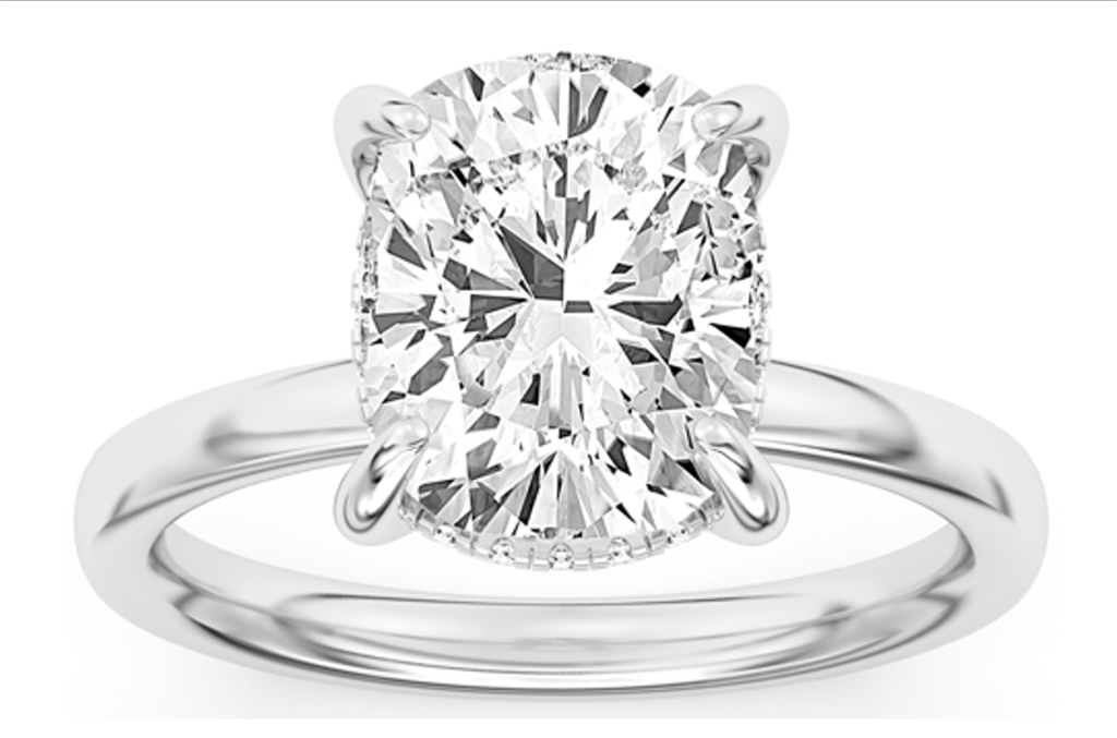 Lab Grown Diamond 14K White Gold Hidden Halo Diamond Ring With (1) Cushion Lab Grown Diamond 3.00CT F VS1 IGI And 22 =0.10CTW Round Lab Grown Diamonds Ring Size 7