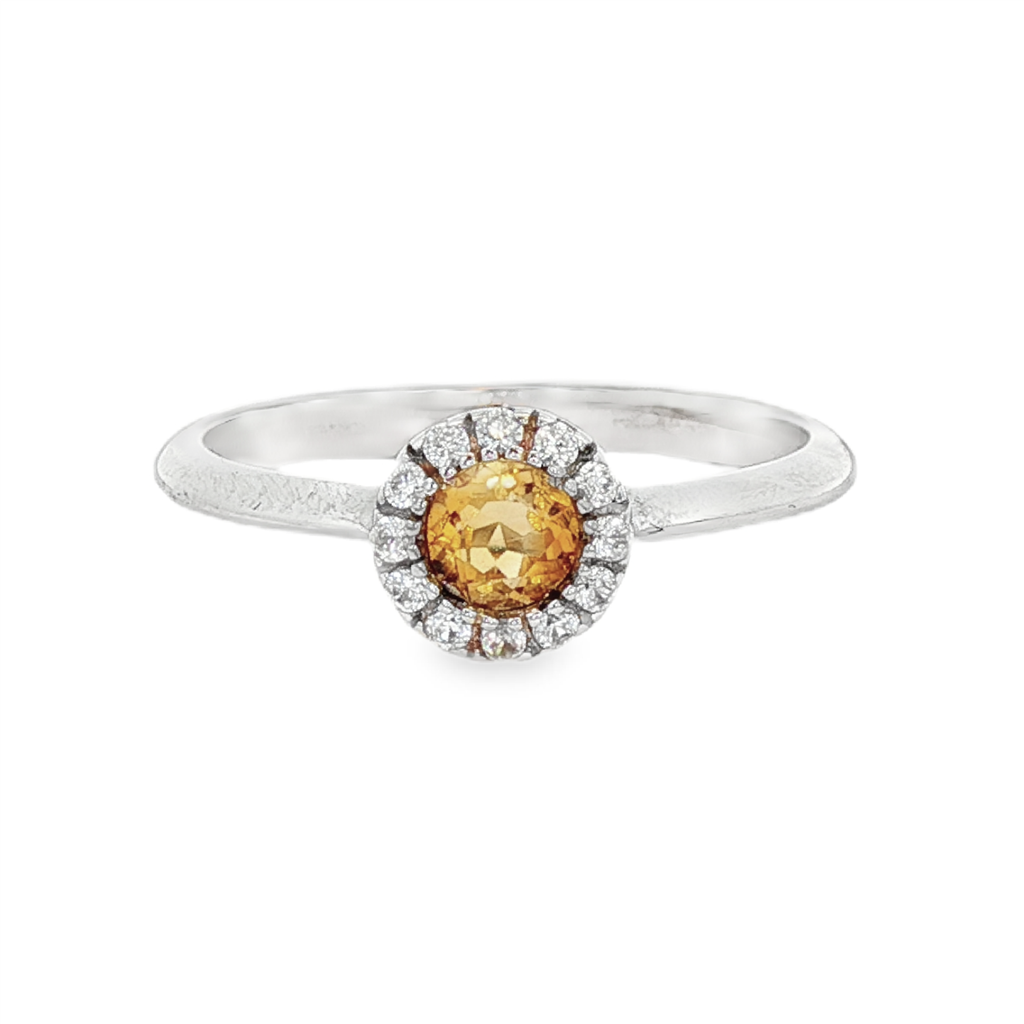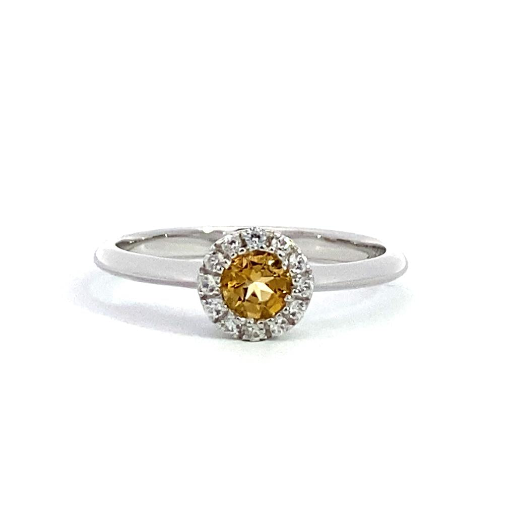 November Birthstone Ring: Sterling Silver Citrine Halo Ring