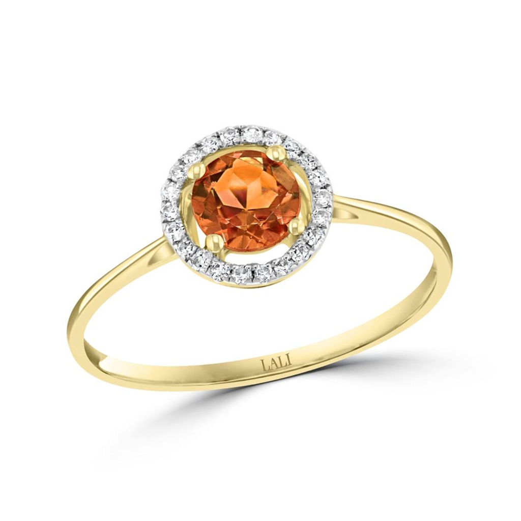 November Birthstone Rings: 14K Yellow Gold Diamond And Citrine Halo Ring