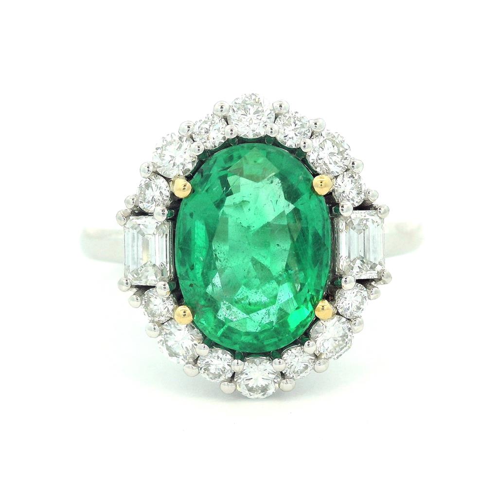 • Stones: (1) Oval Emerald (2) Emerald Cut Diamonds (14) Round Diamonds