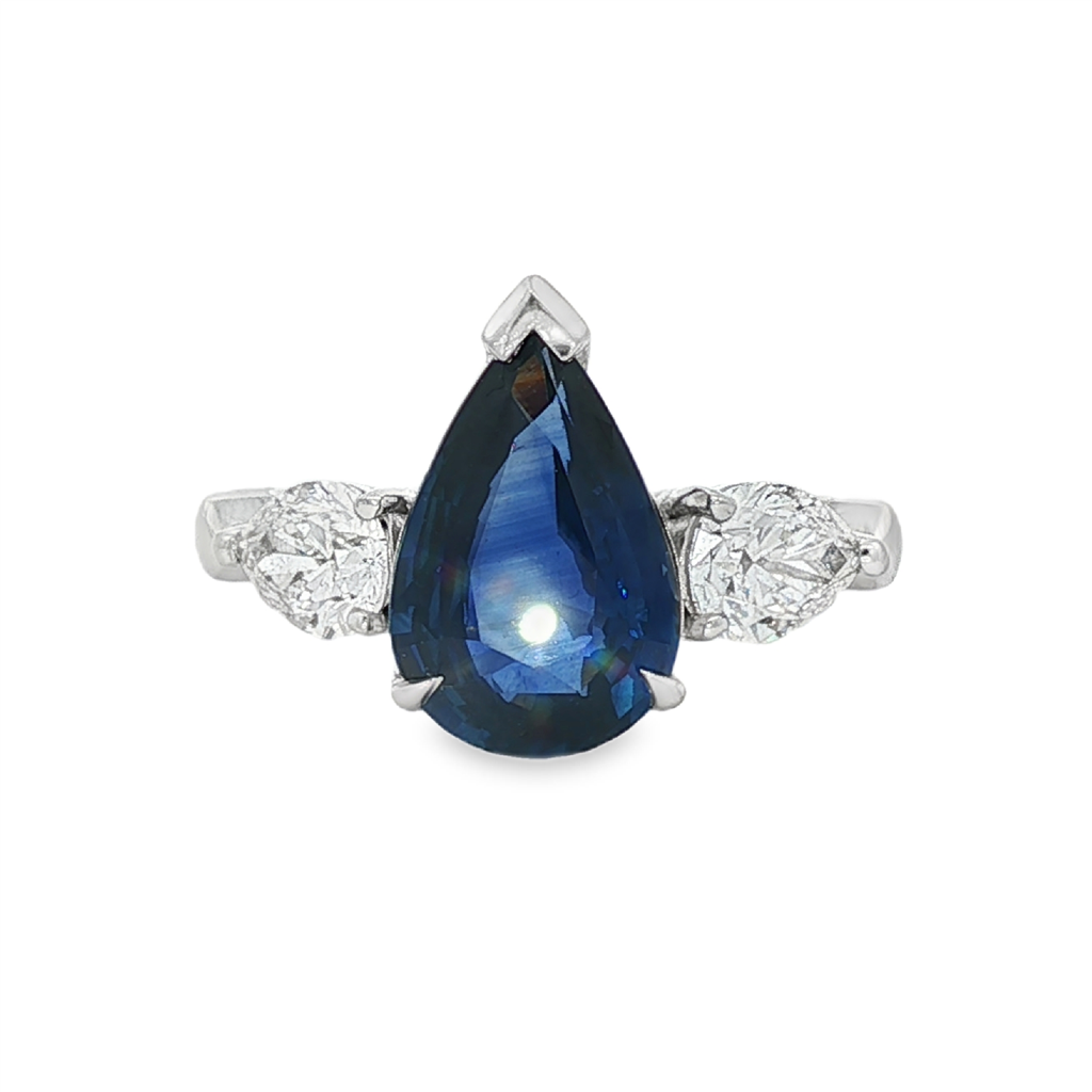 • Stones: (1) Pear Sapphire (2) Pear Diamonds