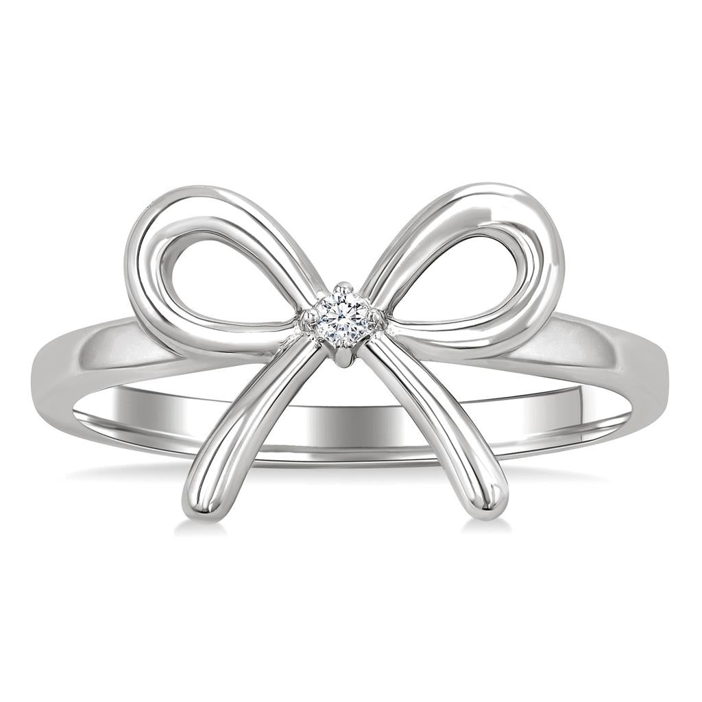 Sterling Silver Bow Natural Diamonds Ring