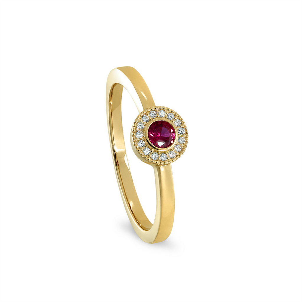 • Stones: (1) Round Simulated Ruby (16) Round Cubic Zirconias