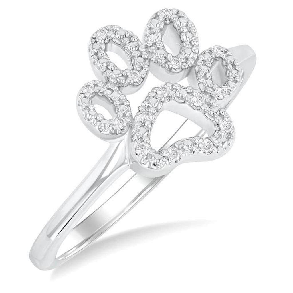 Sterling Silver Puppy Paw Natural Diamonds Ring