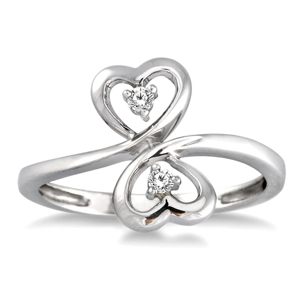 Sterling Silver Twin Hearts Natural Diamonds Ring