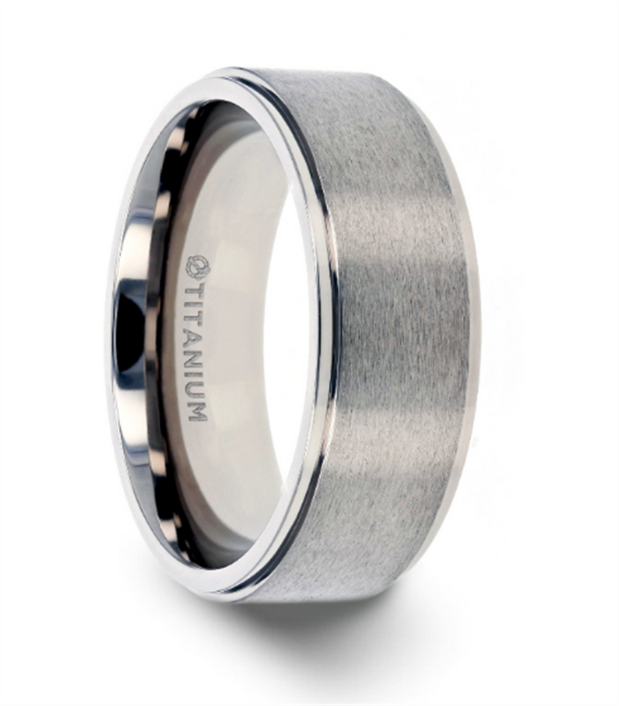 Titanium ‘Rhinox’ Brushed Raised Center Step Edges Wedding Band