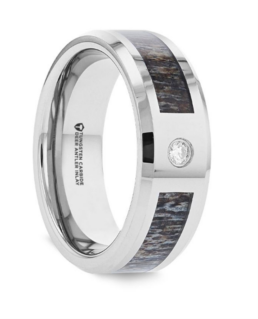 Tungsten Carbide ‘Colton’ 8mm Ombre Deer Antler Inlay Diamond Wedding Band