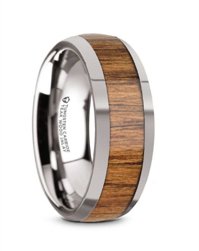 Tungsten Carbide ‘Thekka’ 8mm Teak Wood Inaid Domed Wedding Band