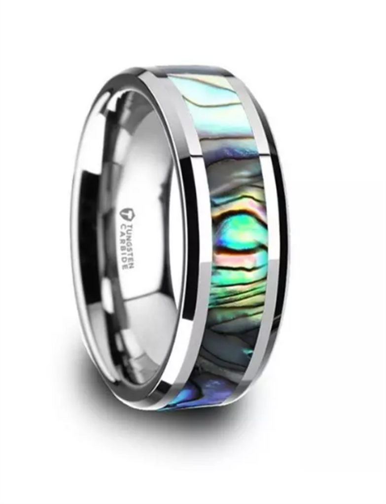 Tungsten ‘Maui’ 8mm Mother Of Pearl Inlay Wedding Band