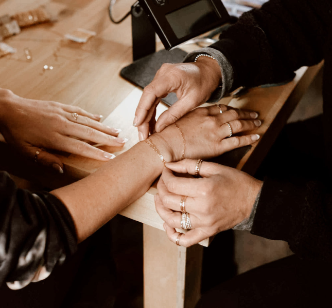 We can do this for individuals or even groups of people during your session. There is no clasp so you never have to take the bracelet off once the welding is complete. In our process we use only solid 14K Gold or solid Sterling Silver and we don't use 'jump' rings. Our expert Goldsmiths permanently weld the ends of the chain to create a truly endless bracelet.