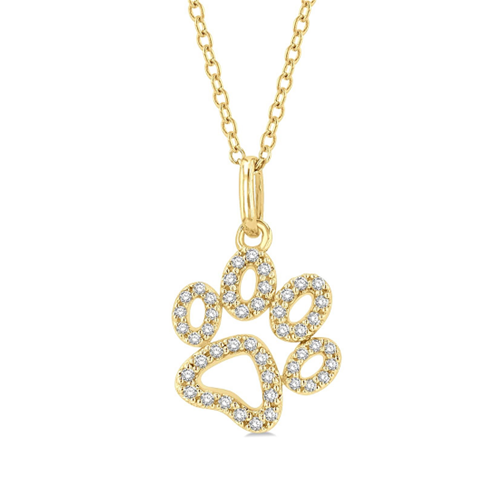10K Yellow Gold Petite Paw Print Diamond Pendant Necklace