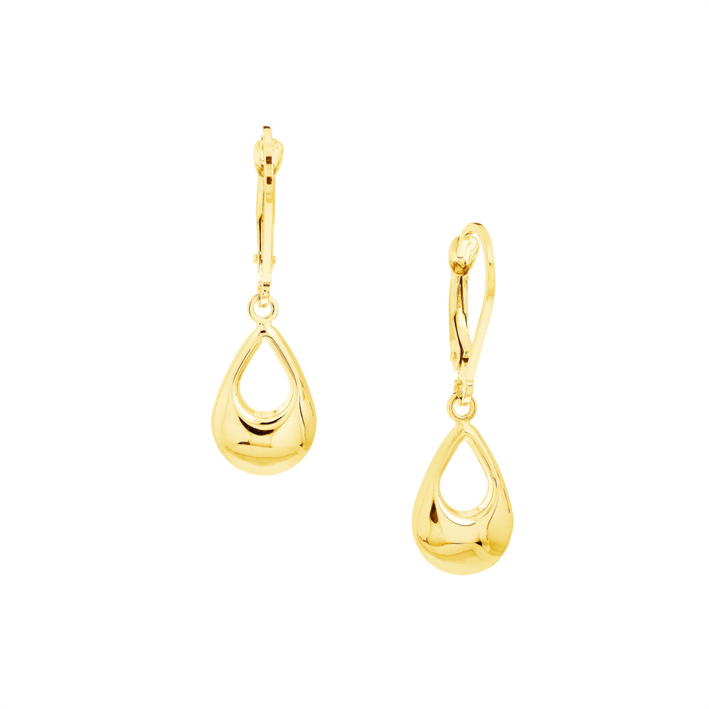 10K Yellow Gold Teardrop Lever Back Earrings