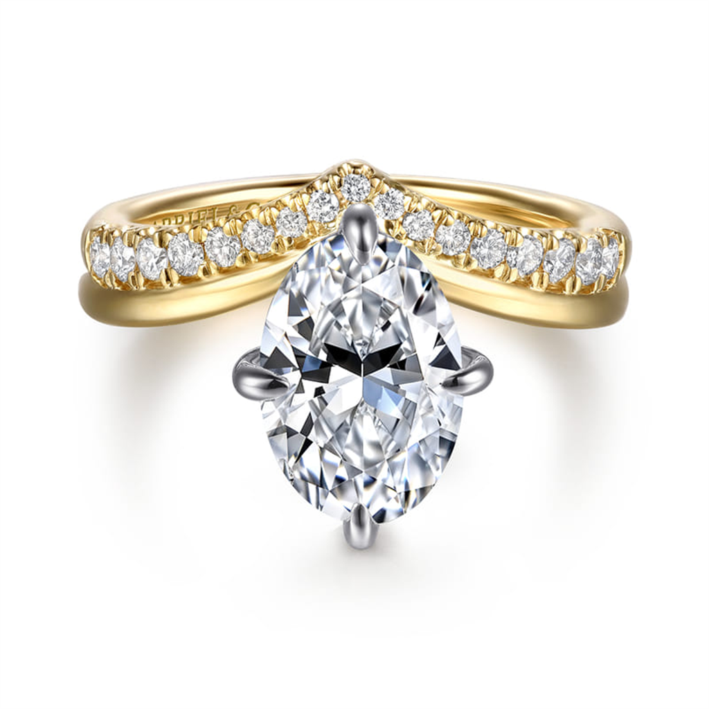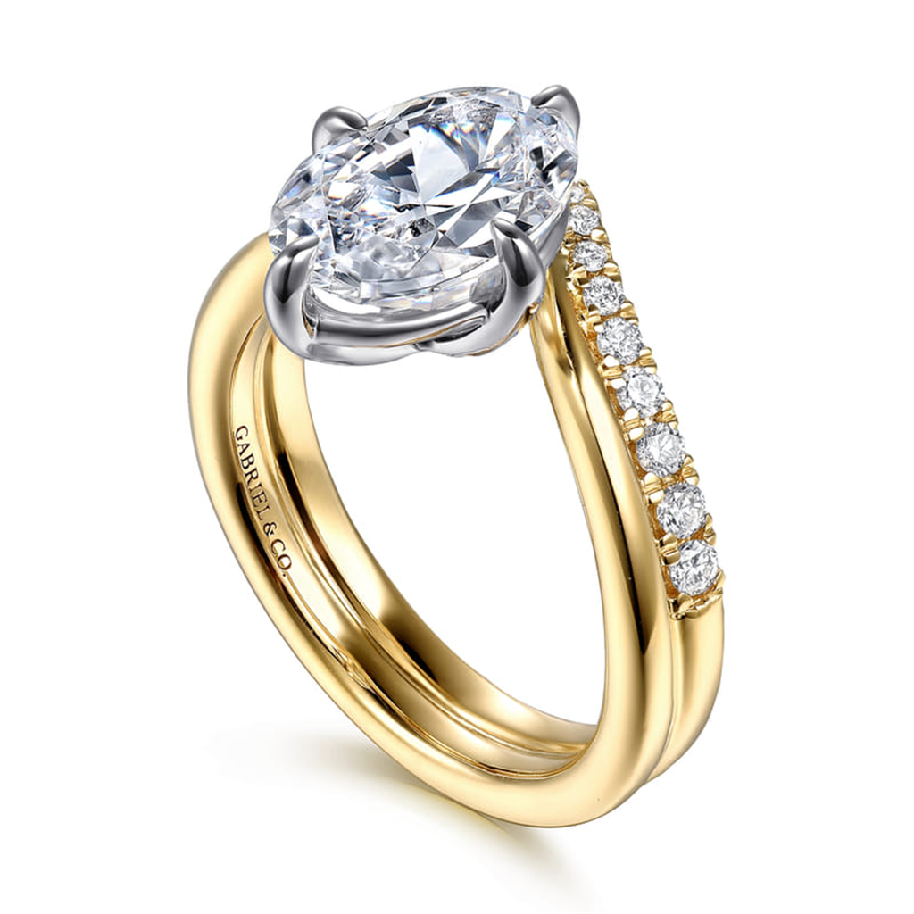 14K Two-Tone 'Crista' Contemporary Oval Natural Diamonds Engagement Ring