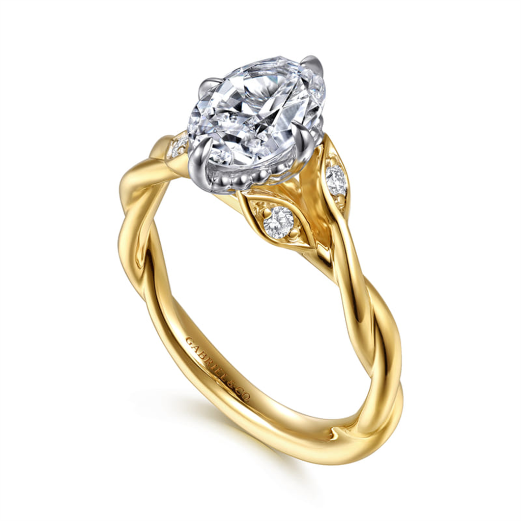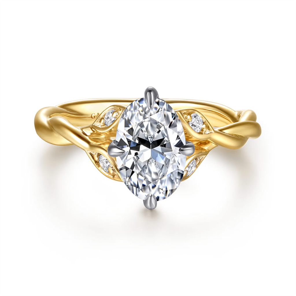 14K Two-Tone 'Daija' Twist Oval Natural Diamonds Engagement Ring
