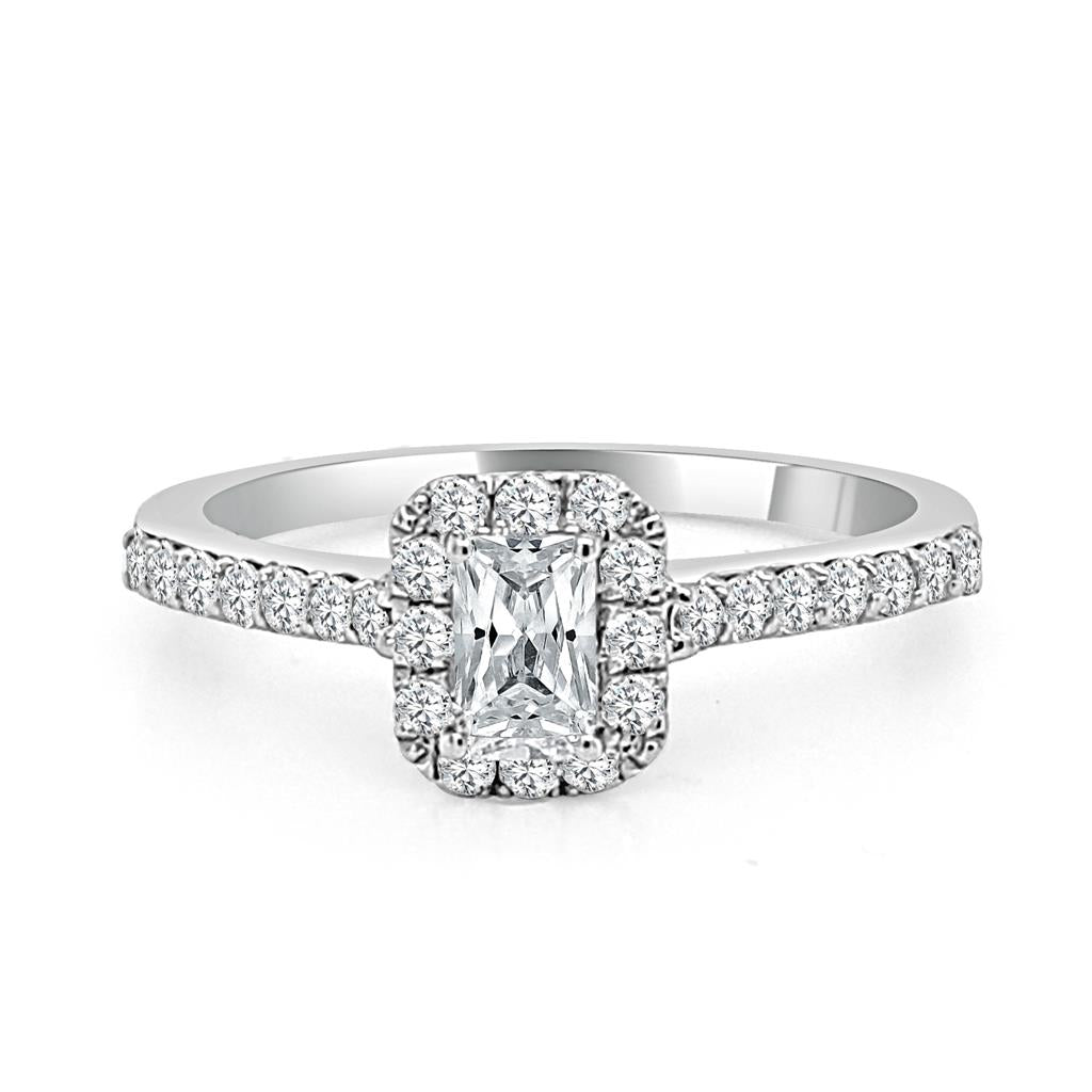 14K White Gold 0.70Ct Emerald Cut Diamond Halo Engagement Ring