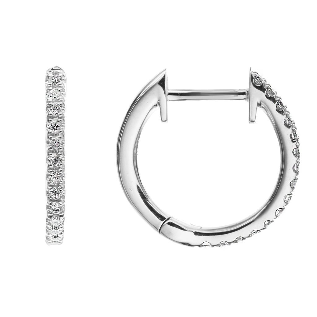 14K White Gold 15Mm Round Huggie Natural Diamonds Hoop Earrings