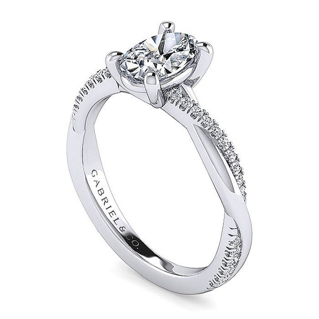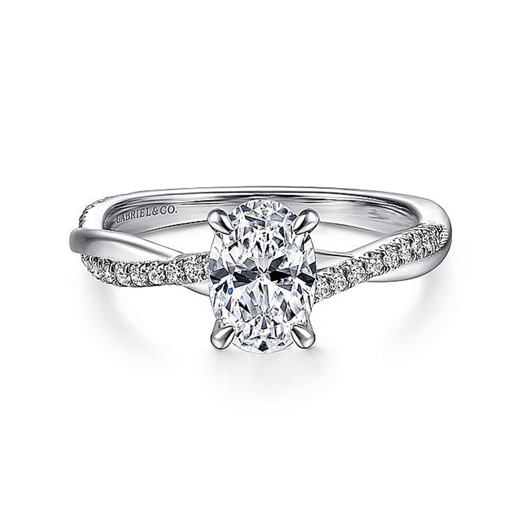 14K White Gold 'Campana' Oval Twist Diamond Engagement Ring